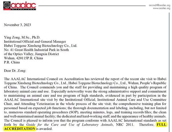 通過(guò)國(guó)際AAALAC完全認(rèn)證表明天勤鑫圣實(shí)驗(yàn)設(shè)施從硬件到軟件,從動(dòng)物福利到環(huán)境衛(wèi)生,從監(jiān)督管理到體系建設(shè)均達(dá)到了實(shí)驗(yàn)動(dòng)物管理和研究活動(dòng)的國(guó)際標(biāo)準(zhǔn)。