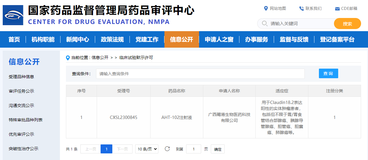 近日,廣西鷺港生物醫(yī)藥科技有限公司(以下簡(jiǎn)稱“鷺港生物”)研發(fā)的AHT-102注射液通過(guò)國(guó)家藥品監(jiān)督管理局臨床默示許可(受理號(hào):CXSL2300845)。AHT-102注射液是針對(duì)熱門腫瘤靶點(diǎn)Claudin18.2的生物制品創(chuàng)新藥,主要適應(yīng)癥為胃癌和胰腺癌。